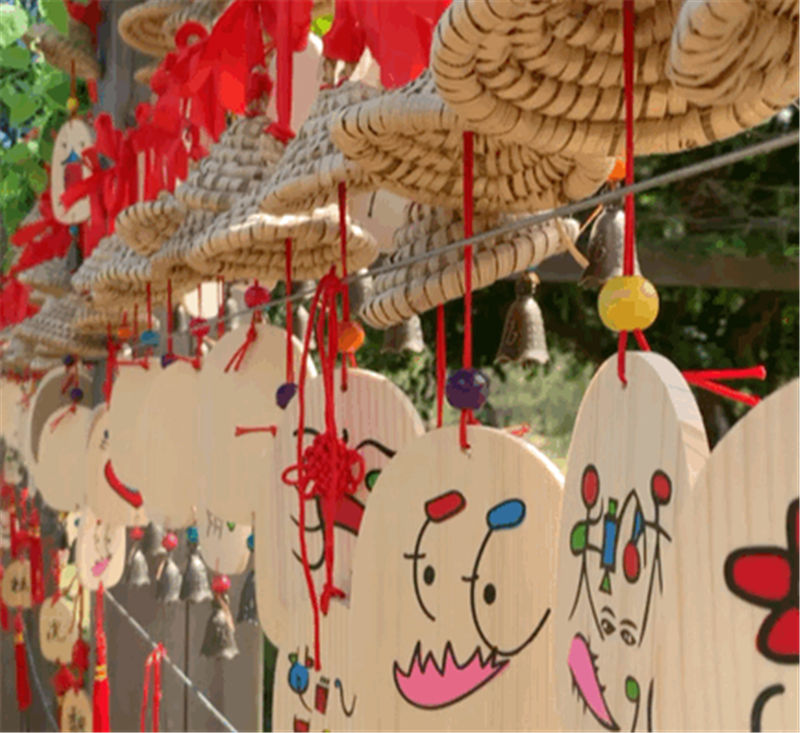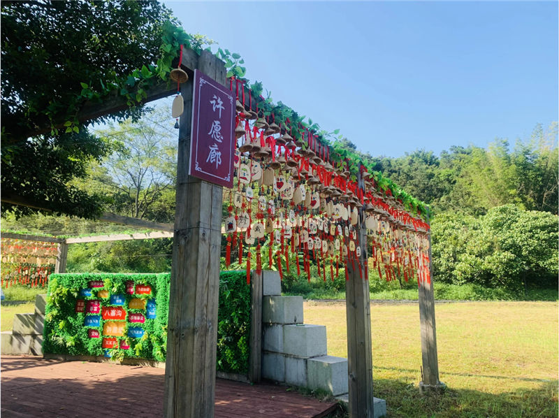 滿墻的祈福牌和紅絲帶,