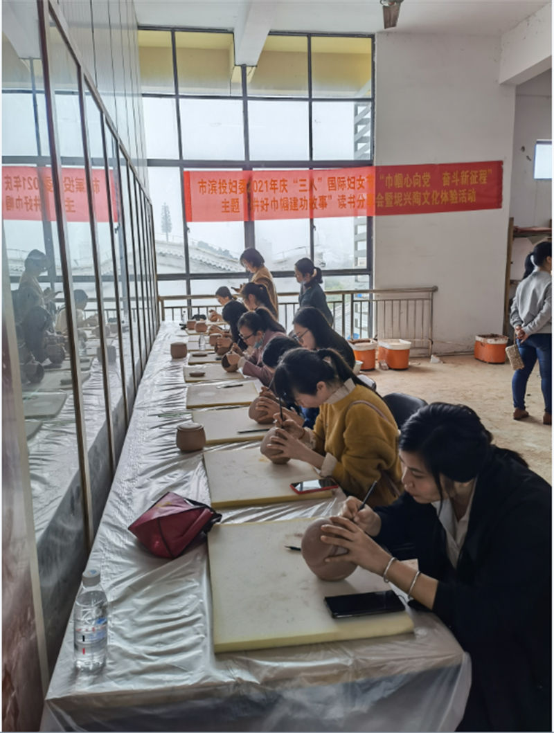 2021年3月8日,欽州市濱海新城投資集團(tuán)有限公司婦委會(huì)圍繞“巾幗心向黨,奮斗新征程”主題,組織開(kāi)展2021年慶“三八”國(guó)際勞動(dòng)?jì)D女節(jié)“講好巾幗建功故事”讀書(shū)分享會(huì)暨坭興陶文化體驗(yàn)活動(dòng),活動(dòng)在欽州方圓陶瓷歷史文化館舉行。