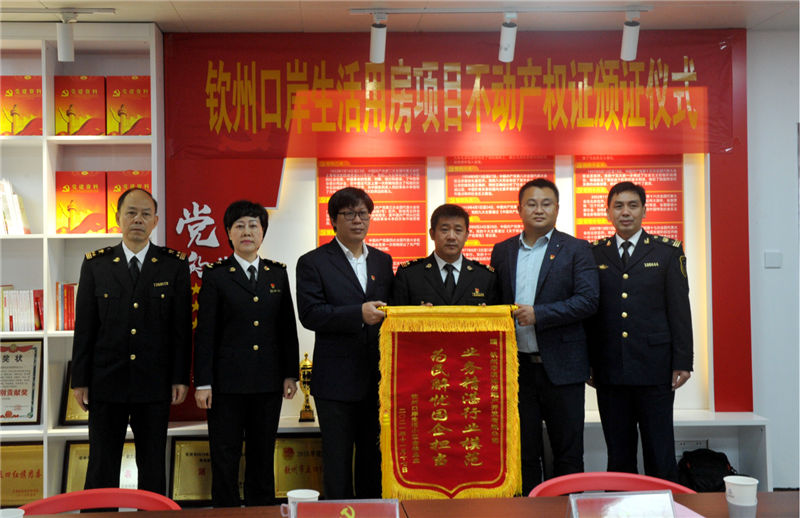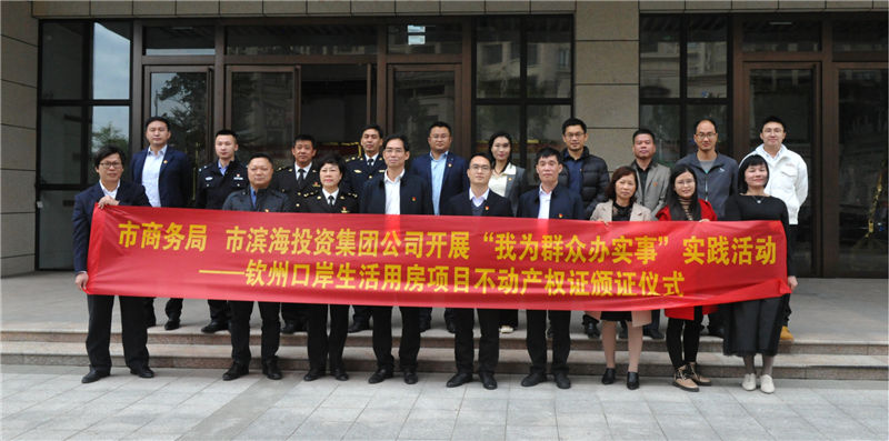 2021年11月23日上午,市商務(wù)局、市濱海投資集團公司在市濱海投資集團公司12樓黨員活動室聯(lián)合開展“我為群眾辦實事”主題實踐活動,舉行欽州口岸生活用房項目不動產(chǎn)權(quán)證頒證儀式。市濱海投資集團公司黨委副書記卜玉聲同志主持會議,市商務(wù)局黨組書記、一級調(diào)研員王紹平同志出席會議并講話。