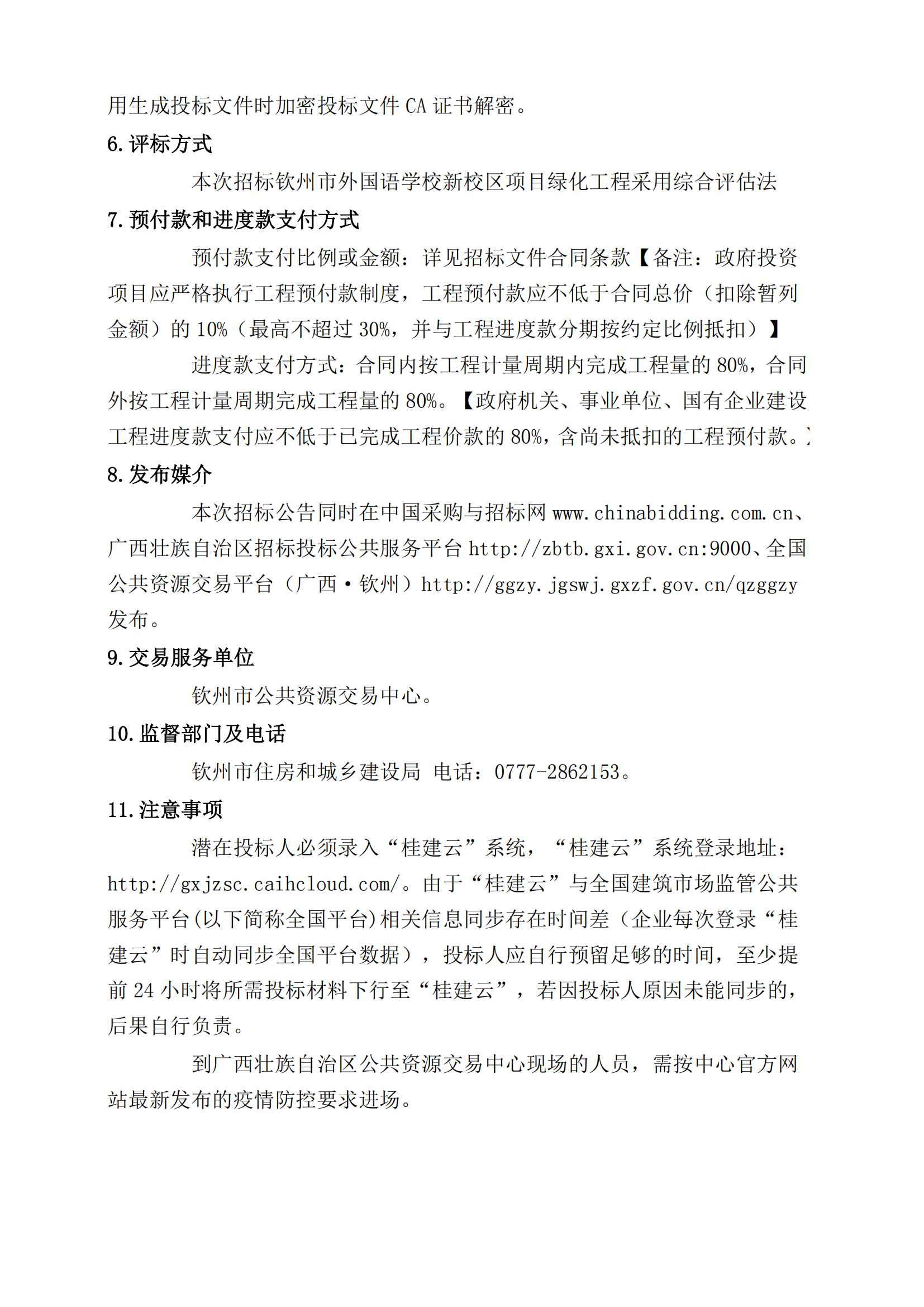 欽州市外國語學校新校區(qū)項目綠化工程施工招標公告
