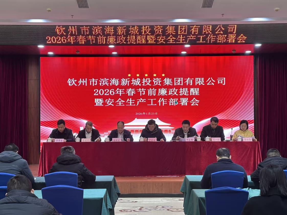 新春佳節(jié)臨近,為切實(shí)統(tǒng)籌推進(jìn)節(jié)日期間廉政建設(shè)與安全生產(chǎn)工作,筑牢廉潔自律與安全生產(chǎn)雙重防線,1月23日上午,欽州市濱海新城投資集團(tuán)有限公司召開2026年春節(jié)前廉政提醒暨安全生產(chǎn)工作部署會(huì)。集團(tuán)公司領(lǐng)導(dǎo)班子、各部門及子公司相關(guān)負(fù)責(zé)人、安全生產(chǎn)聯(lián)絡(luò)員、全體黨員及中層以上領(lǐng)導(dǎo)干部參加會(huì)議。