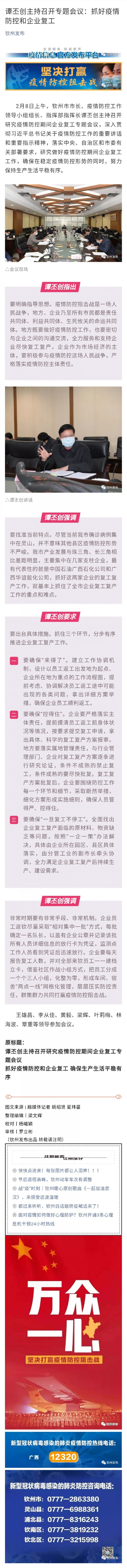 譚丕創(chuàng)主持召開專題會議:抓好疫情防控和企業(yè)復(fù)工