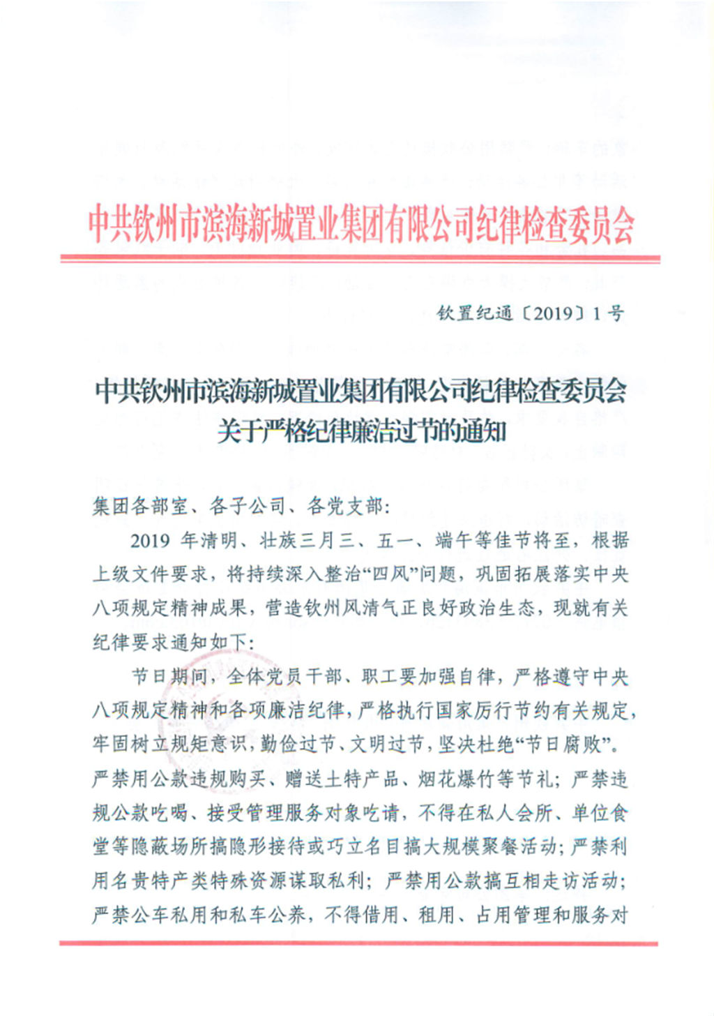 集團(tuán)公司紀(jì)委印發(fā)了《關(guān)于嚴(yán)格紀(jì)律廉潔過節(jié)的通知》