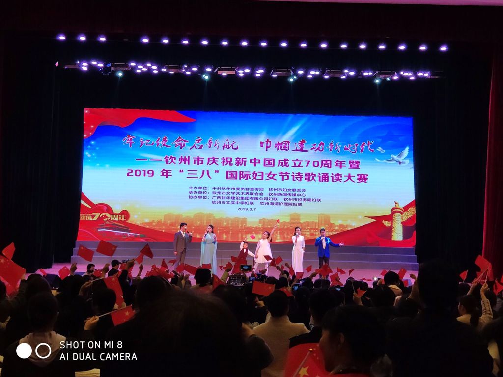 2019年是新中國成立70周年,是決勝全面建成小康社會、實現(xiàn)第一個百年奮斗目標的關鍵之年,也是貫徹落實中國婦女十二大目標任務的開局之年。為激勵全市廣大婦女把握時代主題,貢獻巾幗力量,由欽州市委宣傳部、欽州市婦女聯(lián)合會主辦的“欽州市慶祝新中國成立70周年暨2019年 國際婦女節(jié)詩歌誦讀大賽”在欽州市老年大...