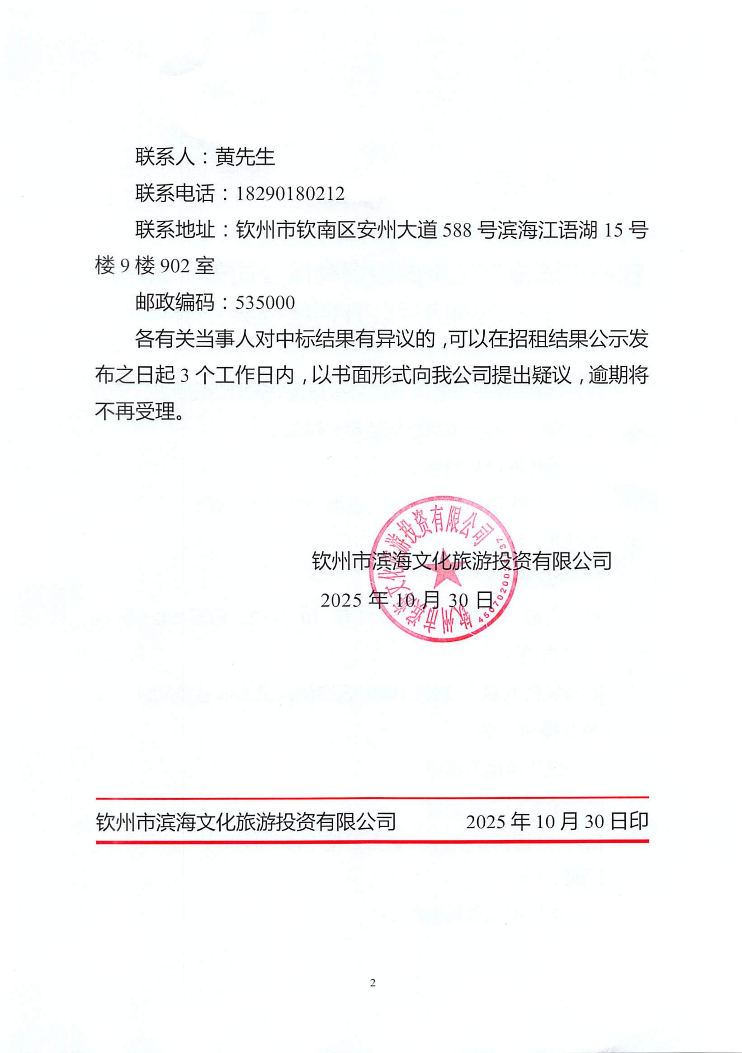 欽州市濱海文化旅游投資有限公司關于欽州市老街范圍房屋公開招租結(jié)果公示