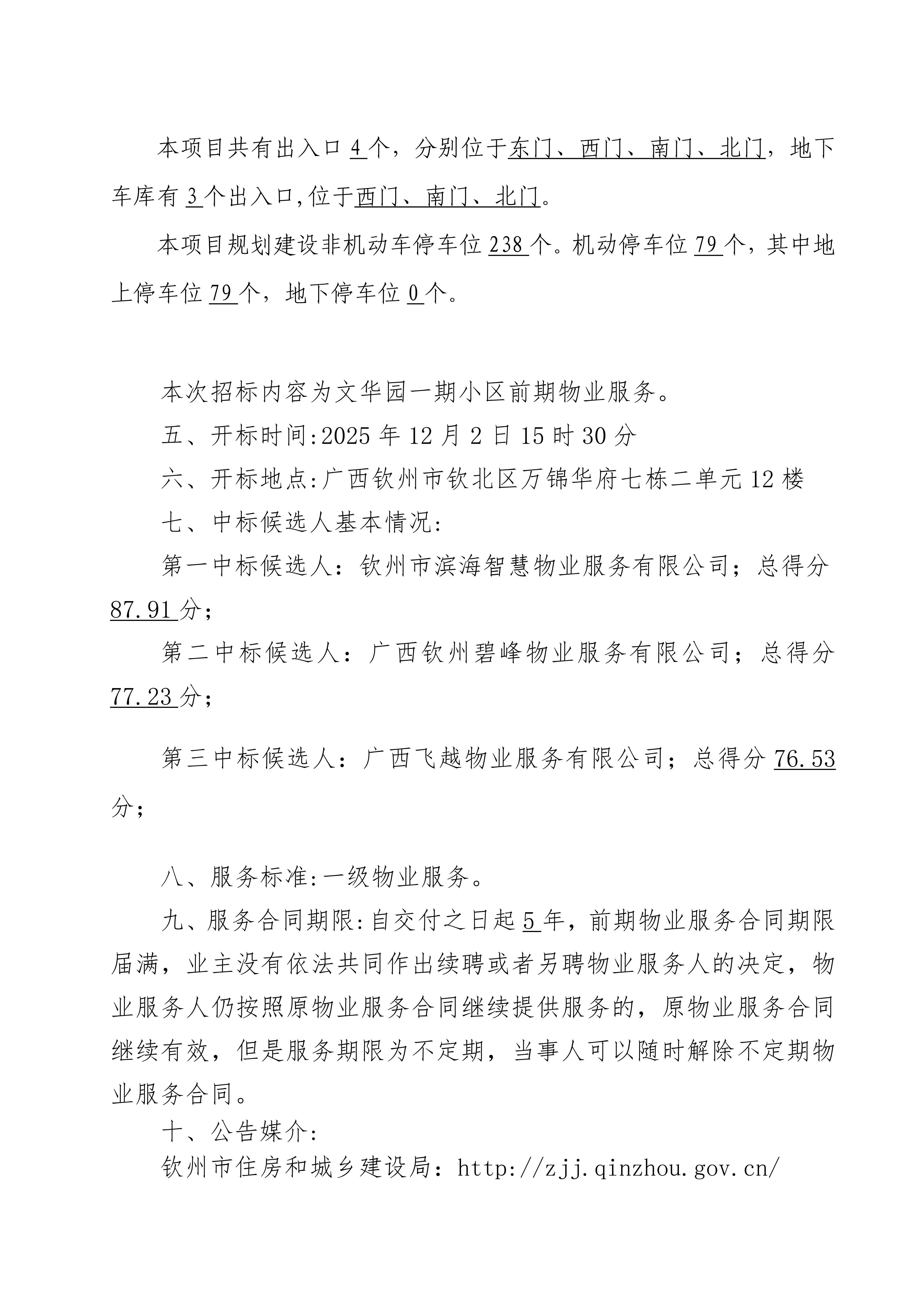 文華園一期小區(qū)前期物業(yè)管理招投標(biāo)中標(biāo)候選人公示信息