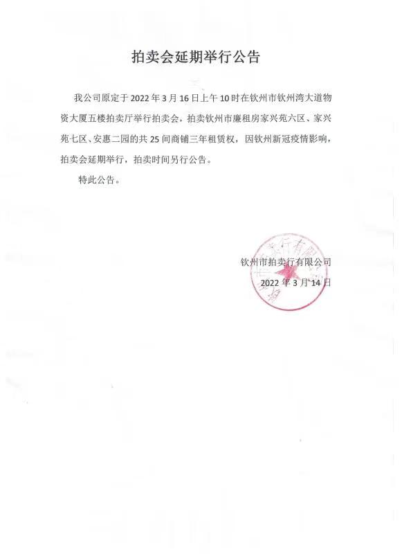 拍賣(mài)會(huì)延期舉行公告