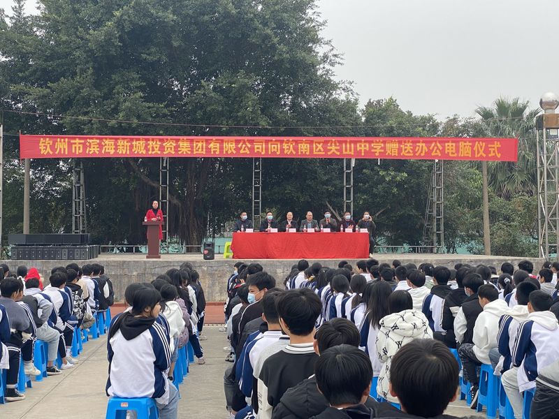 2022年1月13日,集團公司副總經(jīng)理、工會主席楊新棟帶領(lǐng)欽州濱海資產(chǎn)管理有限公司領(lǐng)導(dǎo)到欽南區(qū)尖山中學(xué)捐贈一批辦公設(shè)備,本次捐贈臺式電腦81臺、音頻設(shè)備6套等。