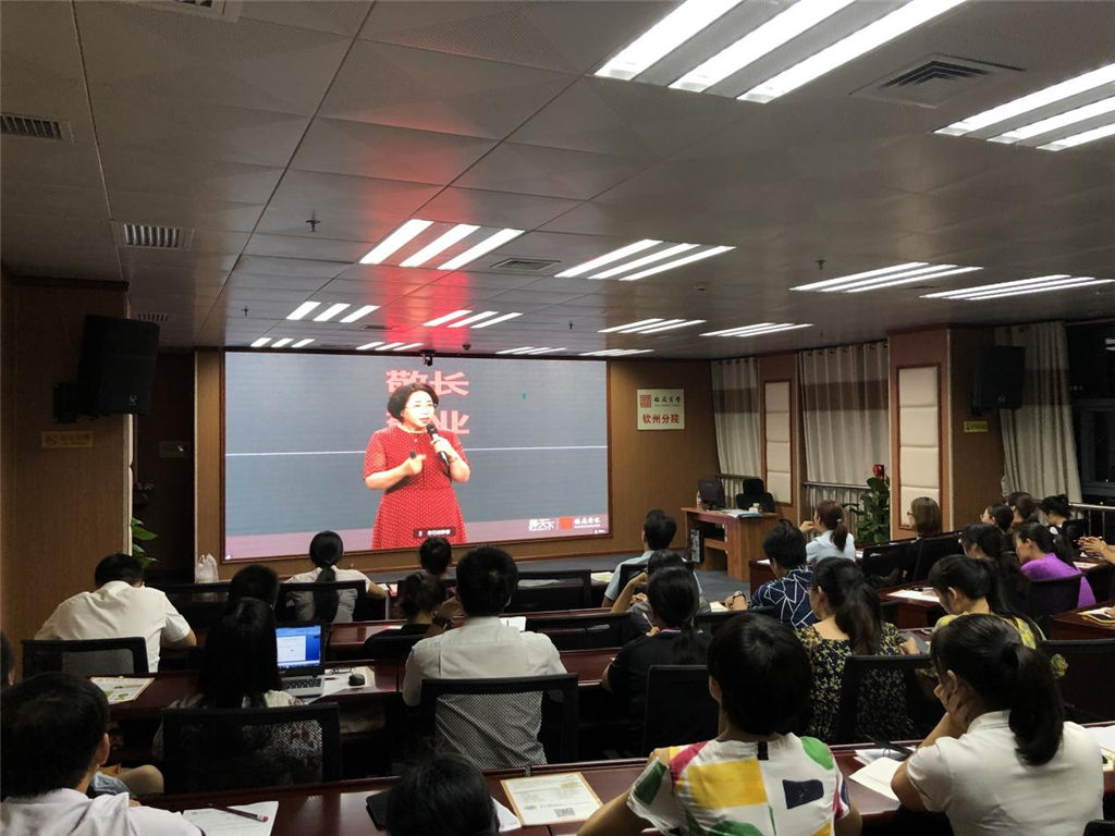 8 月 15 日 19:00 在格局商學(xué)院欽州分院召開欽州市婦女 聯(lián)合會、 欽州市教育局聯(lián)合主辦, 格局商學(xué)院欽州分院承辦 的家庭教育公益講座 《讓愛更有智慧》 我集團(tuán)公司婦委會組 織女職工參加了講座。