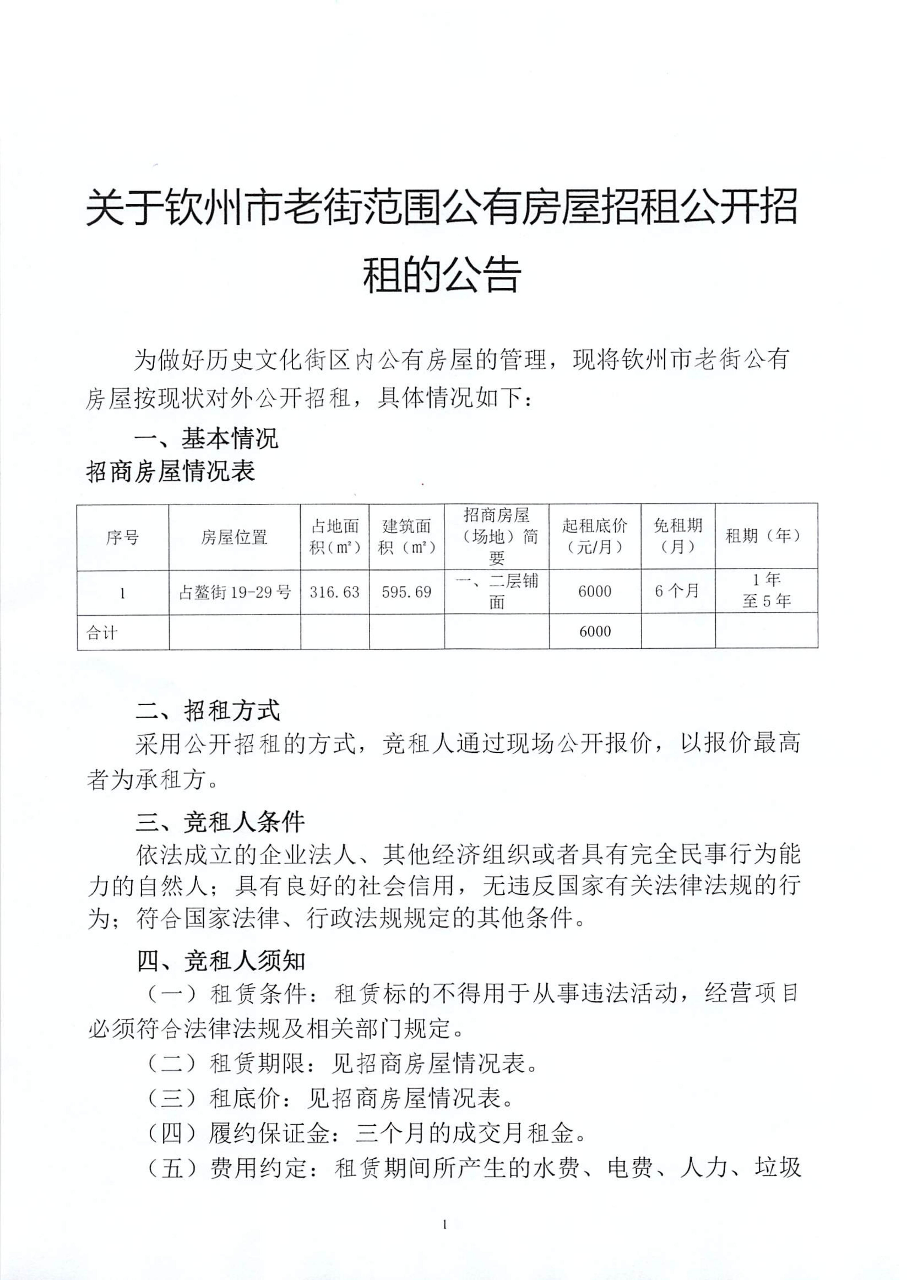 關(guān)于欽州市老街范圍公有房屋招租公開(kāi)招租的公告