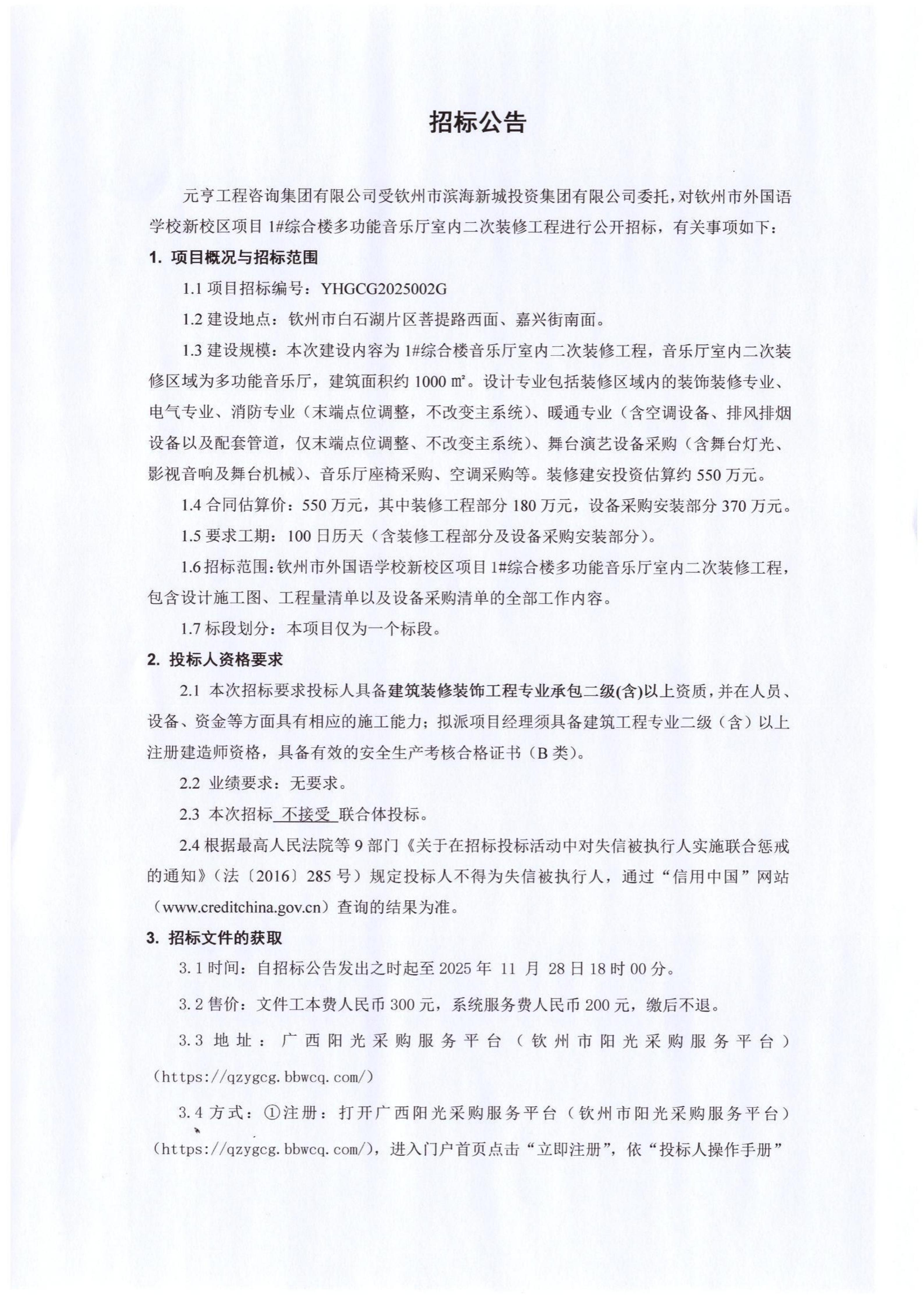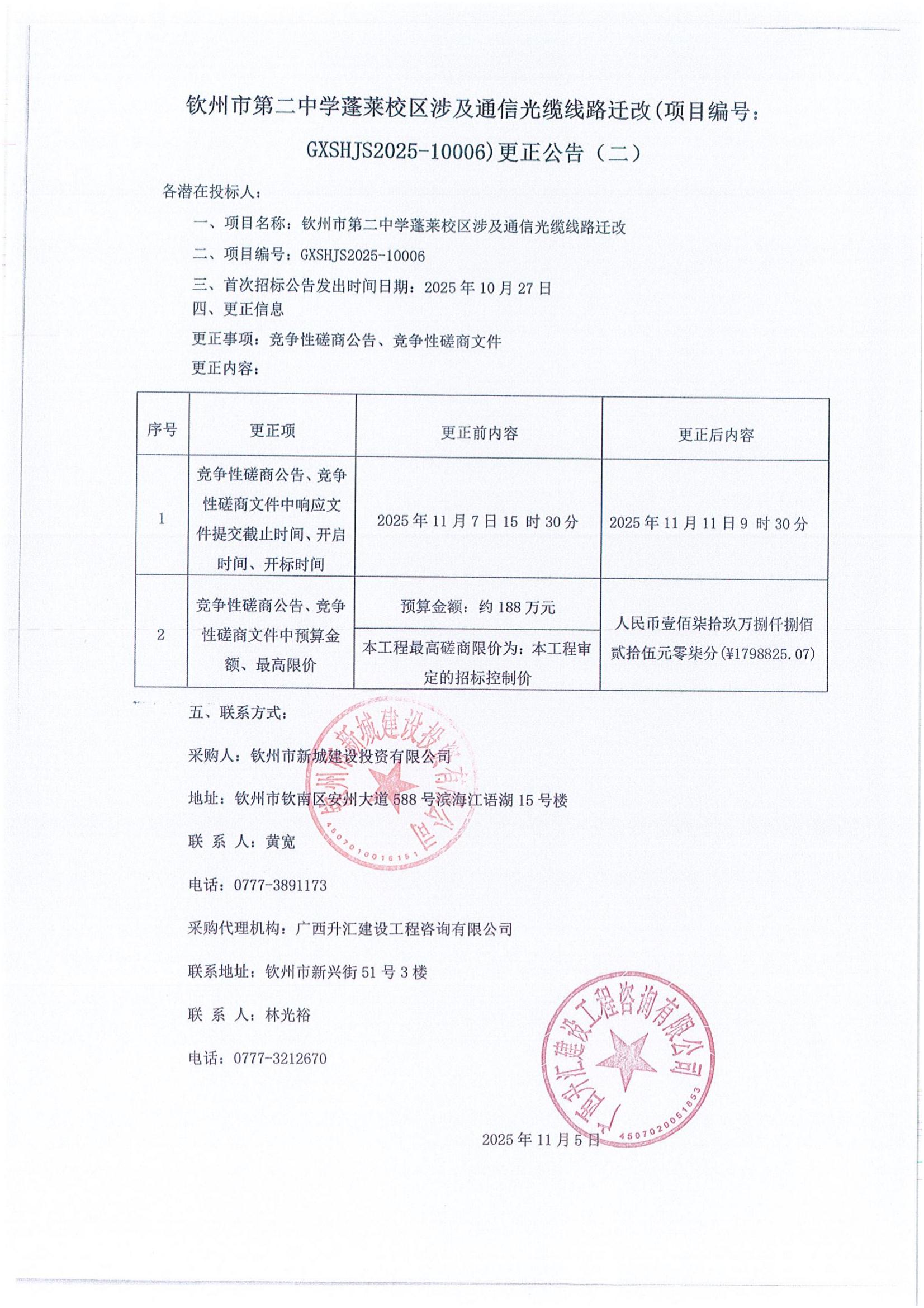 欽州市第二中學(xué)蓬萊校區(qū)涉及通信光纜線路遷改(項(xiàng)目編號(hào): GXSHJS2025-10006)更正公告(二)