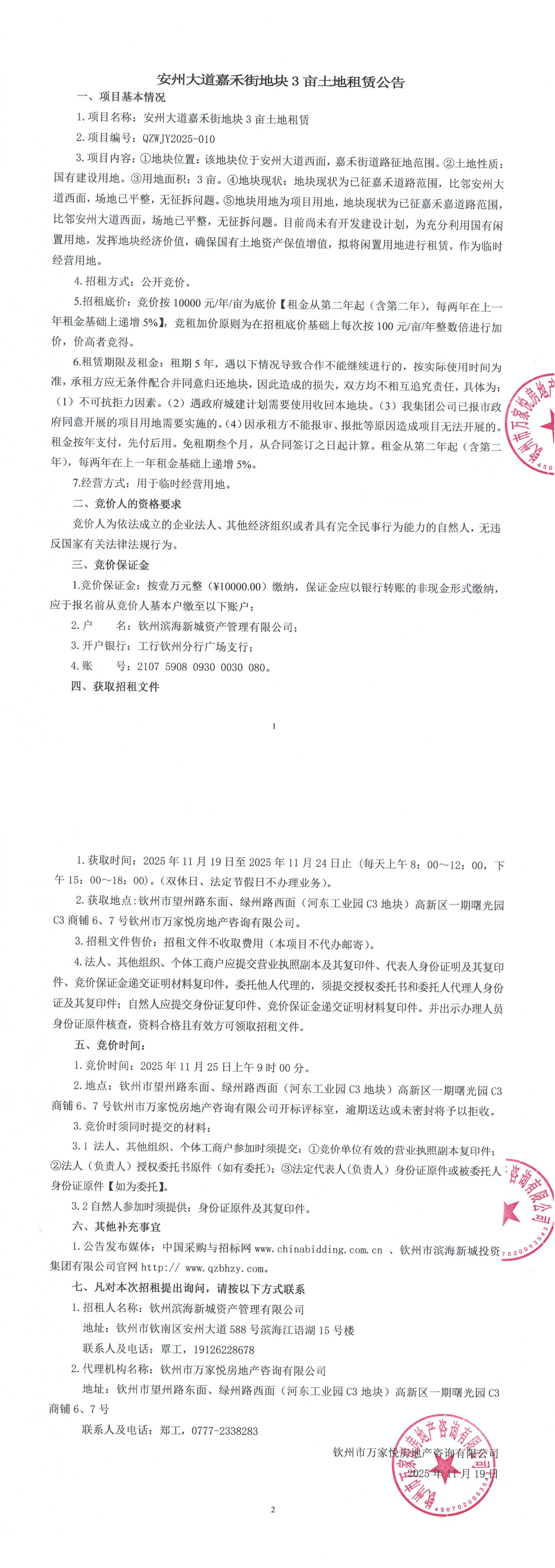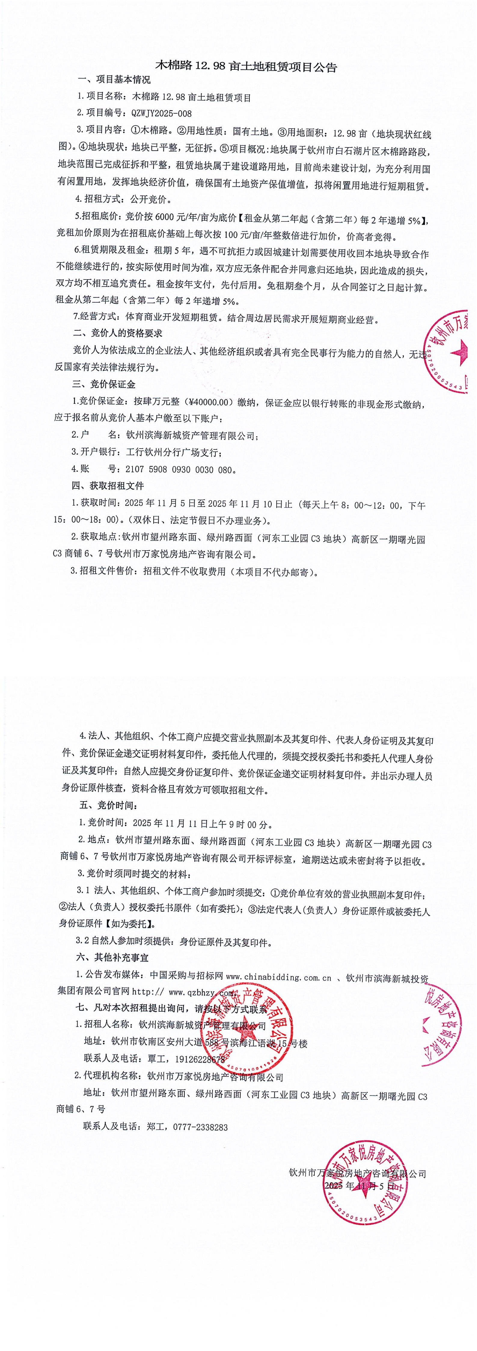 欽州市北部灣大學(xué)東北面6畝地塊公開(kāi)招租項(xiàng)目