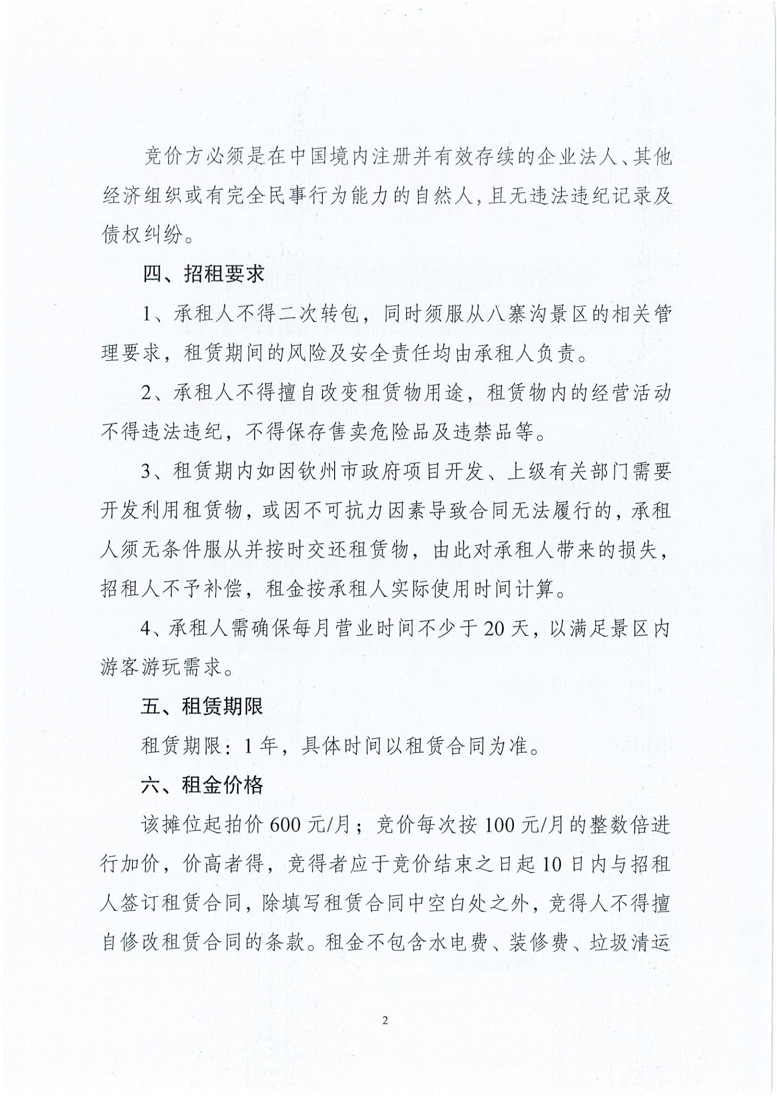 關(guān)于八寨溝攤位招租項目招租公告