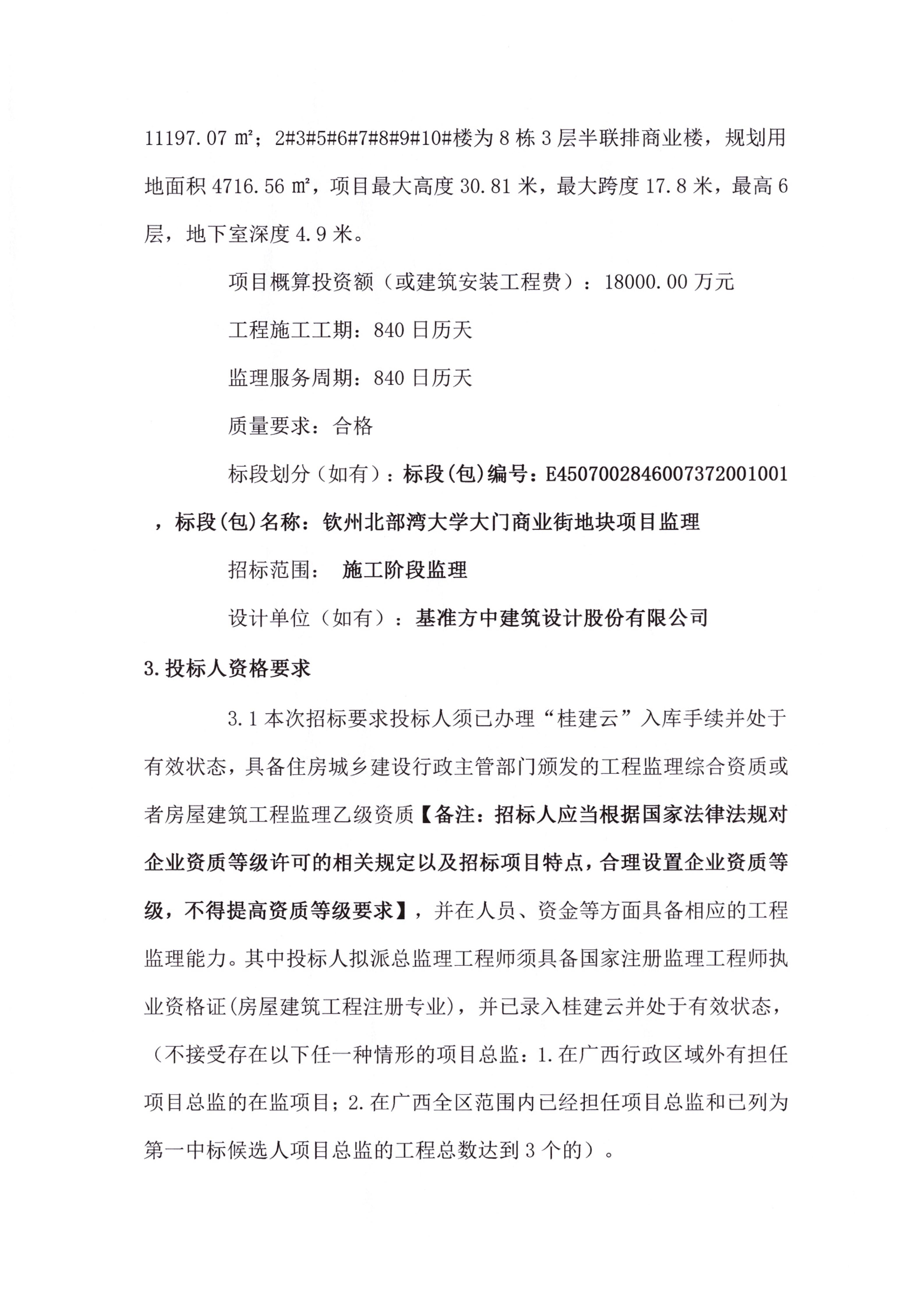 欽州北部灣大學(xué)大門商業(yè)街地塊項目監(jiān)理招標公告